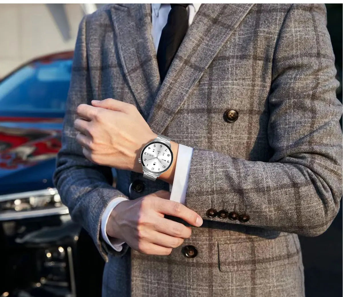 Experience the ultimate convenience with this innovative 2-in-1 smartwatch featuring built-in wireless earbuds. Perfect for the modern gentleman who values technology, fitness, and style in one sleek package.